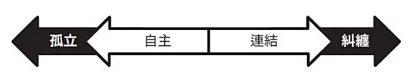 在《勇敢去愛》一書中,亞歷山德拉.H.所羅門認為健康的界線應該是個平衡點,你既可以與人相連、也可以與人分開,既可以維持你自己的能量與自我意識,也能讓你的伴侶維持他們所需的能量。